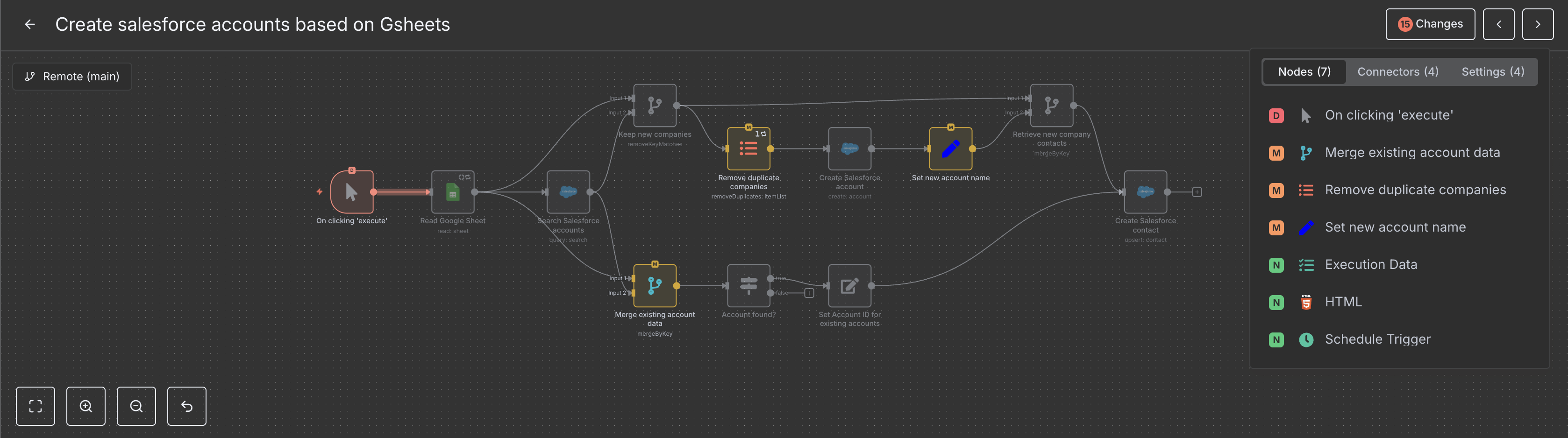 - Check changes inside each node, and spot connector updates, with a side-by-side view of its settings.